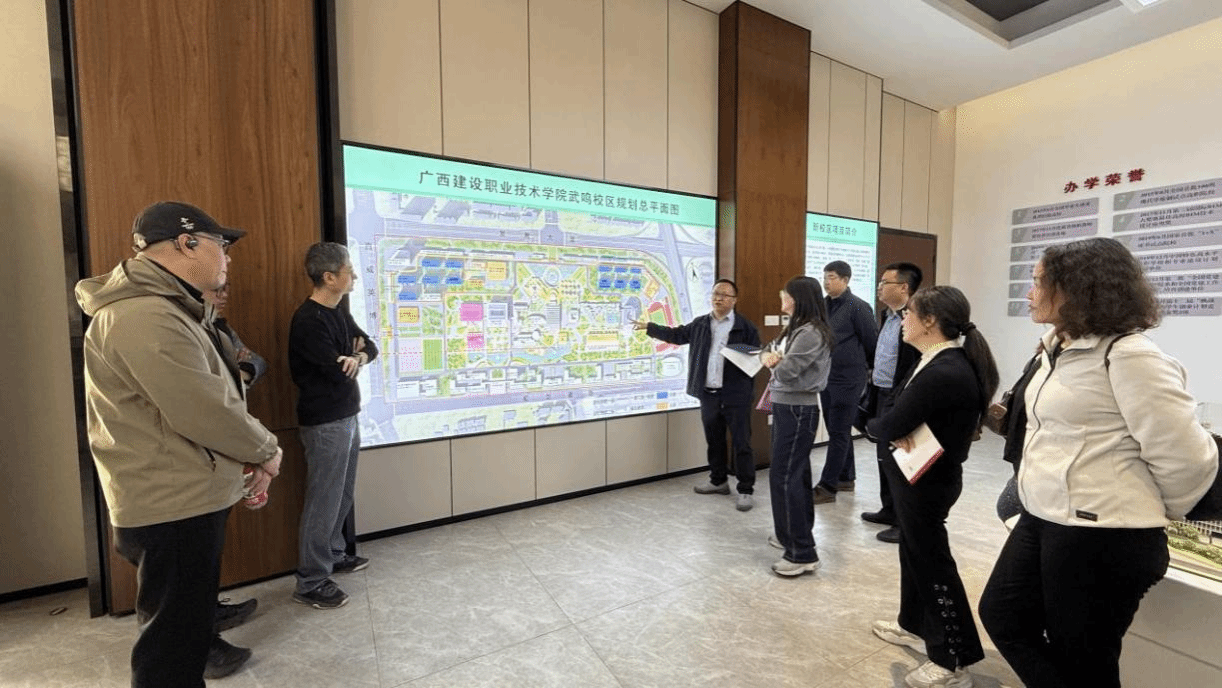 考察過程中,武鳴校區建設指揮部工作人員介紹了校區整體規劃、工程建設進度及配套設施情況。教務處、基建處和各學院負責人重點走訪了公共教學樓、二級學院單體樓、行政辦公區等核心區域,對武鳴校區教學功能布局、教室建設、智慧教學設備配置等提出了優化建議。