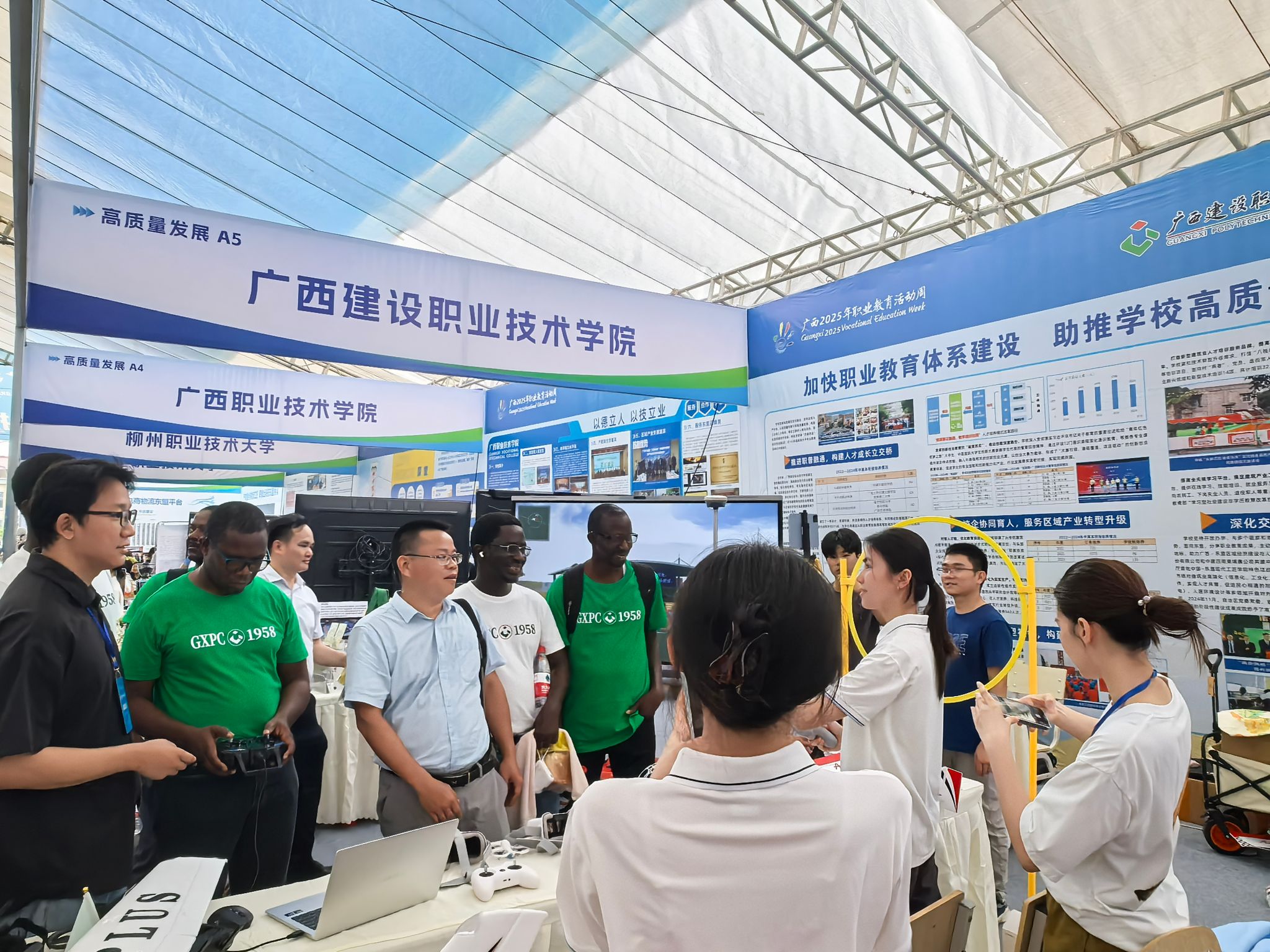 廣西建院5月16日訊(文/教務(wù)處 李瑩 圖/藝術(shù)設(shè)計學院 陳菲菲 教務(wù)處 李瑩) 5月14—15日,以“一技在手,一生無憂”為主題的 廣西2025年職業(yè)教育活動周在貴港舉行,自治區(qū)人民政府副主席廖品琥出席活動并宣布廣西2025年職業(yè)教育活動周開幕。此次活動通過線上線下聯(lián)動的形式,全方位展示廣西職業(yè)教育發(fā)展成果。作為參展院校之一,我校以“加快職業(yè)教育體系建設(shè),助推學校高質(zhì)量發(fā)展”為主題,通過前沿技術(shù)展示、互動體驗等方式呈現(xiàn)學校辦學成果,全面展現(xiàn)了新時代職業(yè)教育賦能產(chǎn)業(yè)升級的蓬勃活力。