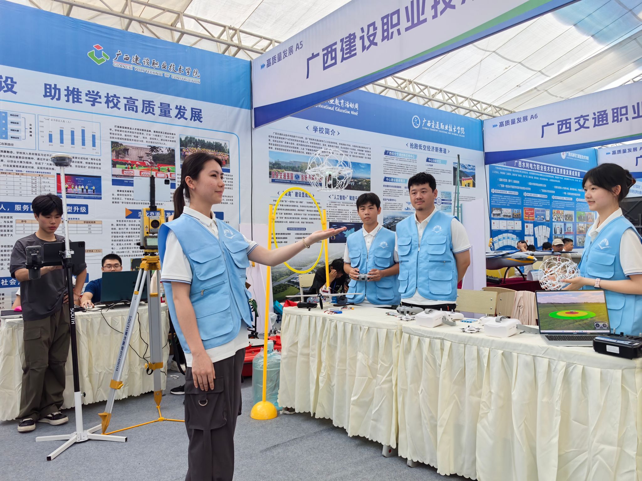 啟動儀式結(jié)束后,學校展位迎來了自治區(qū)領(lǐng)導、職業(yè)院校同行、企業(yè)代表、中小學師生研學團以及社會各界人士先后參觀。柏挺副校長向自治區(qū)領(lǐng)導詳細介紹了無人機應(yīng)用技術(shù)與建筑檢測融合服務(wù)城市更新,工程測量技術(shù)三維建模過程及其在教學中的應(yīng)用,得到領(lǐng)導高度認可。展會期間,學校領(lǐng)導和參展師生積極與各方交流互動,分享學校的辦學經(jīng)驗和發(fā)展成果,通過與各方的深入交流,學校進一步拓寬了視野,為今后在專業(yè)建設(shè)、人才培養(yǎng)、校企合作等方面的發(fā)展奠定了良好的基礎(chǔ),推動學校更好地服務(wù)產(chǎn)業(yè)轉(zhuǎn)型升級和建筑行業(yè)高質(zhì)量發(fā)展。