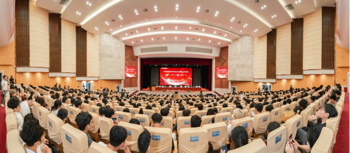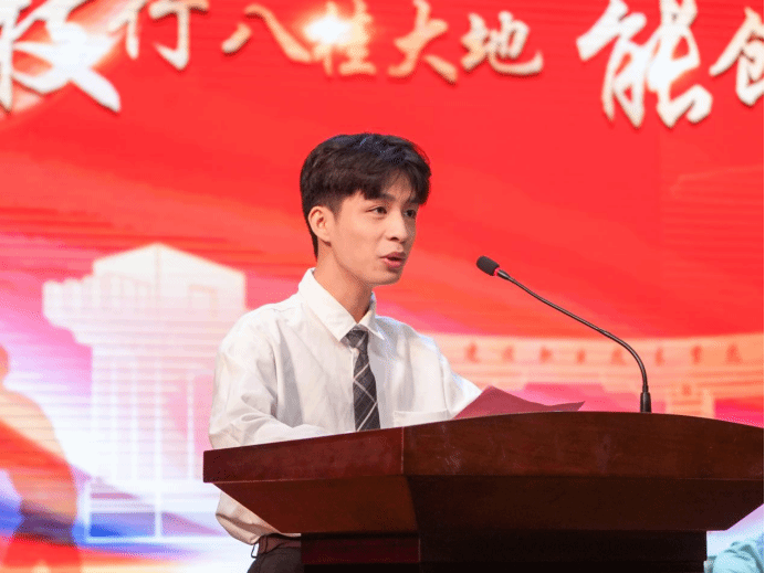 建筑與規劃學院規劃2301班劉呂豪作為在校生代表發言。他代表全體學弟學妹,向學長學姐們致以崇高敬意與誠摯祝福,表示將以學長學姐們為榜樣,腳踏實地錘煉技能,接力傳承“工匠精神”。