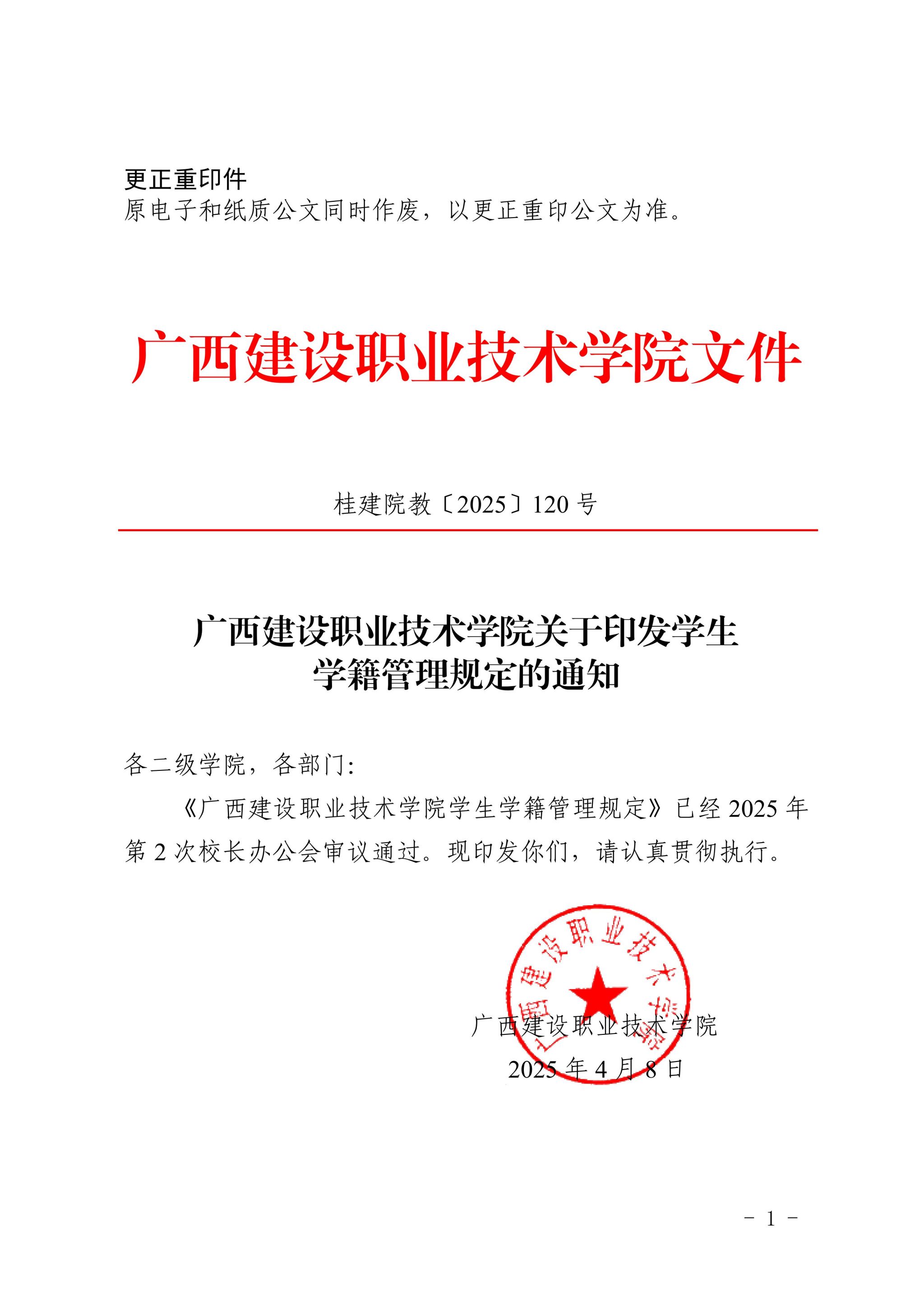桂建院教〔2025〕120號廣西建設(shè)職業(yè)技術(shù)學(xué)院關(guān)于印發(fā)學(xué)生學(xué)籍管理規(guī)定的通知