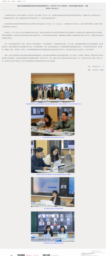 5.5 教材應用于東南亞教育部長組織技術教育發展區域中心(SEAMEO TED)聯合舉辦“中國水處理技術的應用”培訓項目,由主編段春毅、楊文婷主講。