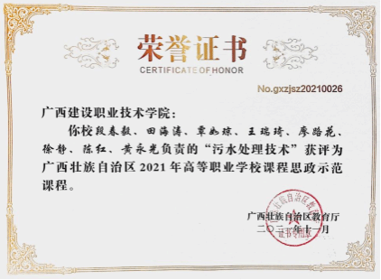 4.4 教材資源《污水處理技術》獲廣西壯族自治區職業教育課程思政示范課