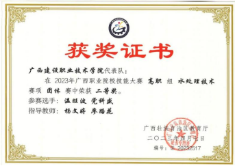 6.4 2023年廣西職業院校技能大賽 高職組 水處理技術 團體二等獎