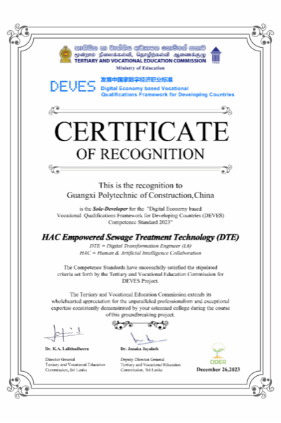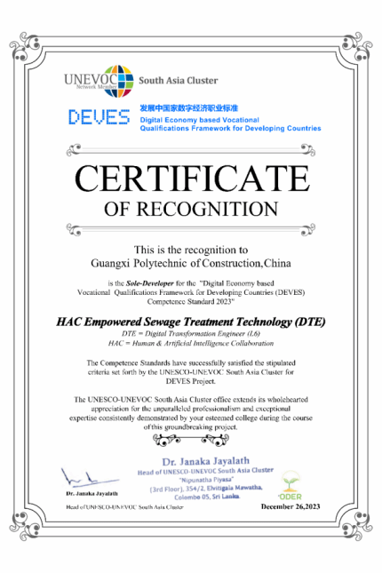5.3教材內容對接數字化重構職業標準《污水處理員》獲批聯合國教科文組織職業教育中心南亞中心發展中國家數字經濟職業標準開發暨斯里蘭卡數字經濟職業標準開發雙認證項目