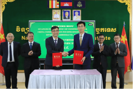 5.2 為積極配合自治區打造面向東盟的職業教育開放合作創新高地建設,教材主編柏挺代表我校與中國建筑第四工程局(柬埔寨)有限公司,在中國—柬埔寨現代建筑工匠學院舉行簽訂了合作協議。共建職業教育標準,共享職業教育資源,共育高技能人才,深化產教融合,服務國家優質產能“走出去”戰略,為打造中國職業教育國際合作特色品牌增添新動力。