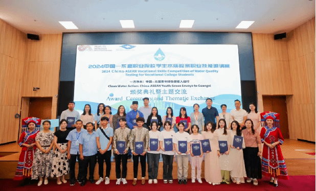5.7 我校主辦2024中國—東盟職業院校學生水質檢測職業技能邀請賽,來自中國、東盟共5個國家17支參賽隊共同競技,來自柬埔寨、印度尼西亞、老撾、泰國等東盟國家生態環境主管部門的官員觀摩了比賽.