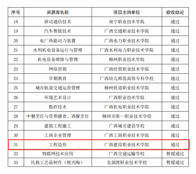 校企共建自治區(qū)級職業(yè)教育《工程造價》專業(yè)教學資源庫,課程入選資源庫智慧職教平臺,已順利通過驗收。