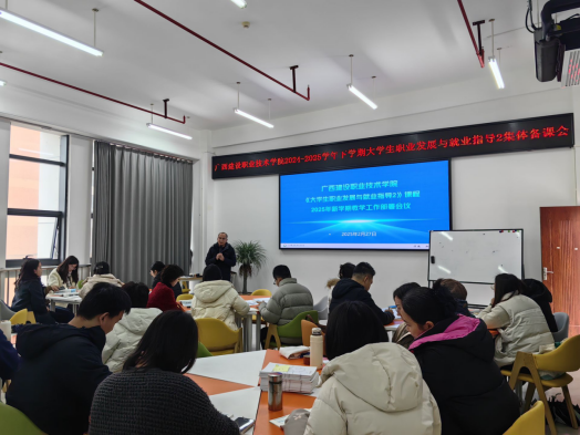 廣西建院3月3日訊(招生就業處 練翠瀅)為切實提升《大學生職業規劃與就業指導》課程的教學質量,確保教學內容與學生實際需求緊密對接,我校于2月27日在行政副樓410室組織了集體備課會。該課程團隊的全體教師參與會議,共同為新學期的教學工作做足準備。會上,招生就業處晏毅副處長介紹了學生目前整體就業形勢,強調教師要根據就業環境形勢的變化及時調整和更新授課內容,既要引導學生在本專業中進行充分的職業可能性探索,又要引導學生樹立“...