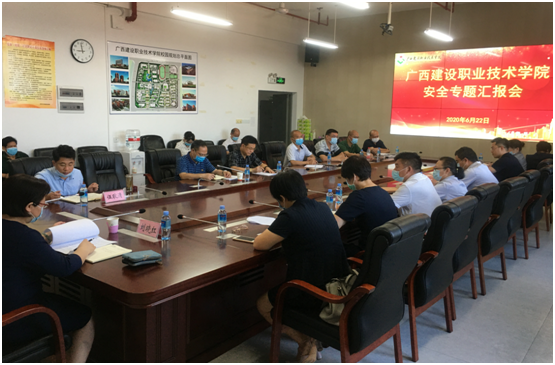 廣西建院6月23日訊(后勤管理處 李瑩)為深入貫徹落實教育部全國和全區(qū)學校安全工作視頻會議精神,6月22日上午,我校在實訓南樓709會議室召開安全專題工作匯報會,學院黨委書記劉曉紅,副院長伍耿清,后勤管理處(安...