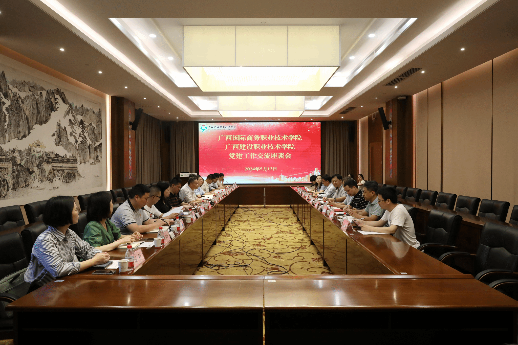 廣西建院5月14日訊(文/黨委組織部?圖/黨委宣傳部 韋植?。?月13日,廣西國際商務職業(yè)技術學院黨委副書記青增計一行14人到我校考察交流,雙方就做好新時代黨建“雙創(chuàng)”和“雙帶頭人”教師黨支部書記工作室培育創(chuàng)建工作進行了探討交流。我校黨委副書記曾繁雄出席座談會并陪同參觀,黨委組織部分管負責人、相關二級學院黨總支書記參加座談會。會議現(xiàn)場座談會上,曾繁雄副書記對青增計副書記一行的到來表示熱烈歡迎,并從學校黨委、二級學院黨組織和基層黨支部層面,...