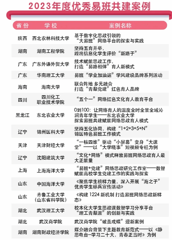 廣西建院5月13日訊(黨委學生工作部 黃楚凌)5月10日,教育部易班發(fā)展中心公布了2023年度全國易班共建優(yōu)秀名單,我校工作案例《構建“一心五環(huán)”,樹立網絡育人“新范式”》入選2023年度優(yōu)秀易班共建案例。全區(qū)共五所高校入選,我校是入選的廣西兩所高職院校之一。本次評選由教育部易班發(fā)展中心面向全國高校開展,經全國各高校報送、各省推薦、專家評審等環(huán)節(jié),最終從全國27個?。ㄗ灾螀^(qū)、直轄市)及新疆生產建設兵團推薦的各獎項近900份評審材料中,...
