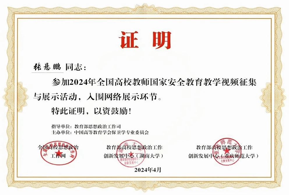 廣西建院5月24日訊(黨委學(xué)生工作部 張懸鵬)近日,2024年全國(guó)高校教師國(guó)家安全教育教學(xué)視頻征集與展示活動(dòng)評(píng)選結(jié)果揭曉,經(jīng)學(xué)校申報(bào)、專家遴選、集中評(píng)議,全國(guó)共100件作品入圍網(wǎng)絡(luò)展示環(huán)節(jié)。我校藝術(shù)設(shè)計(jì)學(xué)院團(tuán)總支書(shū)記張懸鵬老師主講的《能源與國(guó)家安全》課程作為百佳作品入圍網(wǎng)絡(luò)展示,是此次入選的全區(qū)高職高專唯一作品。此次活動(dòng)由教育部思政司指導(dǎo)、中國(guó)高等教育學(xué)會(huì)保衛(wèi)學(xué)專業(yè)委員會(huì)主辦,入選作品將在全國(guó)高校思想政治工作網(wǎng)、...