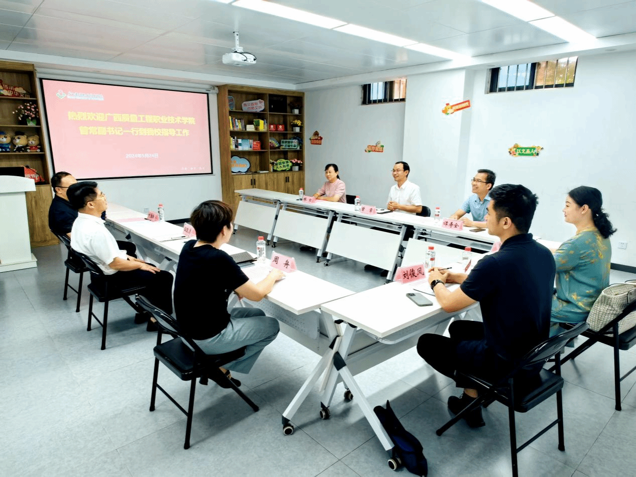 廣西建院5月29日(黨委學生工作部 馬凱)近日,廣西質量工程職業技術學院黨委副書記、紀委書記曾常一行5人到我校,重點圍繞“一站式”學生社區綜合管理模式建設開展調研交流。我校副校長伍耿清,學工處、教務處相關領導陪同調研。曾常書記一行先后參觀了我校“一站式”學生社區部門功能空間,詳細聽取了功能空間負責老師的介紹。參觀結束后,雙方來到學生社區網絡思政中心會議室進行座談交流。伍耿清副校長對曾常副書記一行的到來表示熱烈歡迎,...