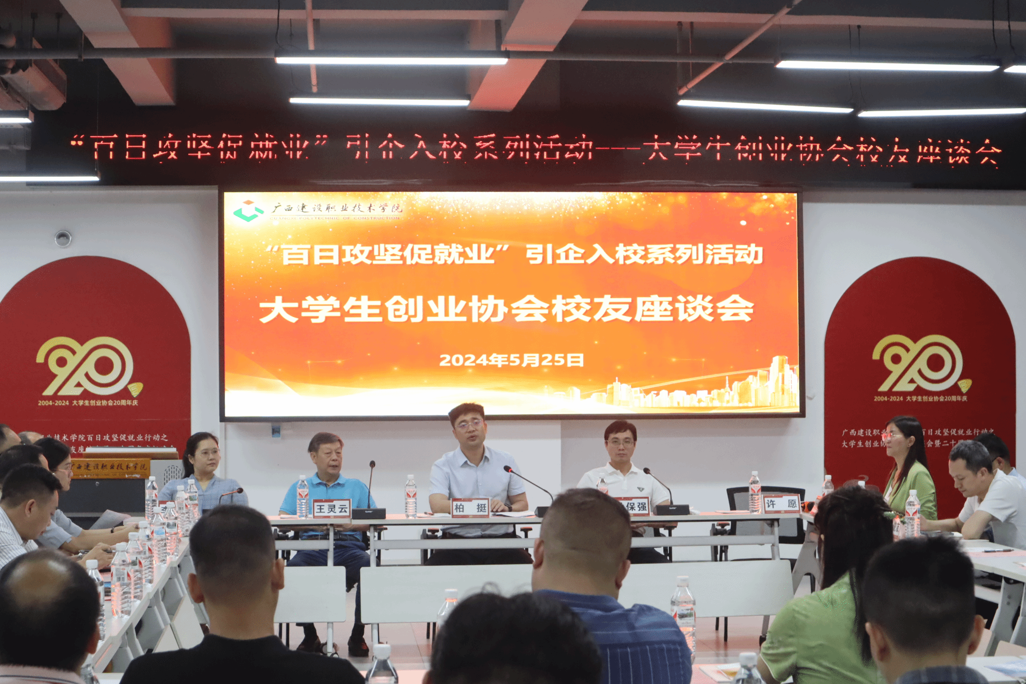 廣西建院5月27日訊(文/招生就業處 練翠瀅 圖/創業協會)為全面總結大學生創業協會的發展成績和經驗,促進和加強協會校友間、校友與母校間的聯系,發揮校友在畢業生就業中的積極作用,5月25日,大學生創業協會舉行校友座談會暨20周年慶祝活動。學校副校長柏挺,校友辦常務副主任王靈云、招生就業處副處長晏毅、歷任及現任指導老師和返校協會校友代表,共計140余人參加校友座談會,招生就業處處長孫保強主持會議。座談會上,柏挺副校長從辦學規模、...