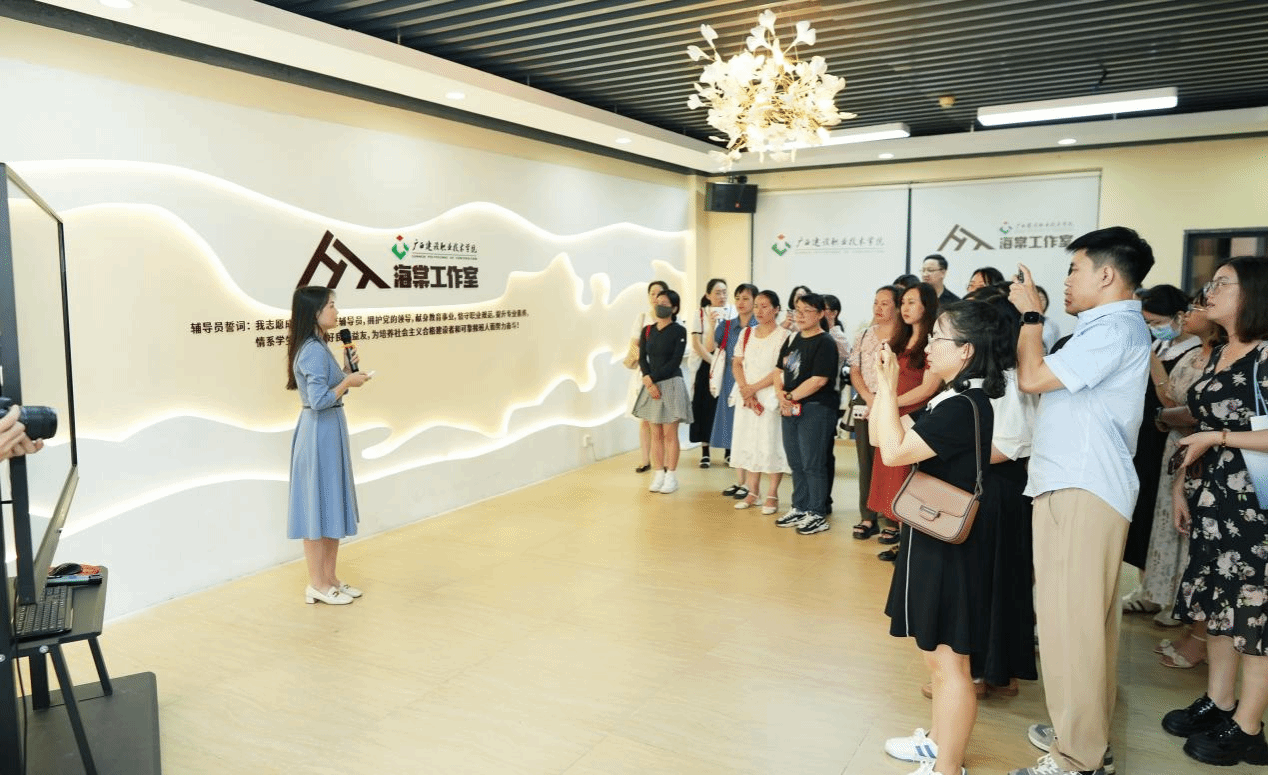 廣西建院6月5日訊(管理工程學(xué)院 封炫妃)6月2日上午,由江蘇省教育學(xué)會班主任專業(yè)委員會、廣西工業(yè)職業(yè)技術(shù)學(xué)院主辦的第四屆職業(yè)院校輔導(dǎo)員(班主任)“社會情感能力與專業(yè)成長”研討會學(xué)員到我校海棠工作室參觀交流。本次交流共有來自8所高校50余名輔導(dǎo)員到場。交流會上,管理工程學(xué)院黨總支書記代端明對本次研討會學(xué)員們的到訪表示歡迎,就管理工程學(xué)院黨建工作及輔導(dǎo)員隊伍建設(shè)的具體做法進(jìn)行了介紹,并與來賓交流、探討。他表示,...