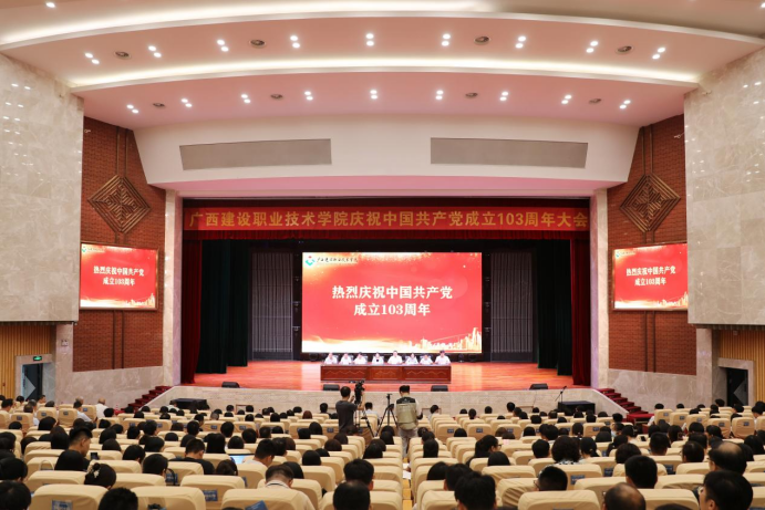 廣西建院6月25日訊(文/黨委宣傳部 陳熙 圖/黨委宣傳部 韋植巍 記者團 李承宏 羅海權)6月25日下午,我校在禮堂召開慶祝建黨103周年大會。會議旨在深入學習貫徹習近平新時代中國特色社會主義思想、黨的二十大精神和習近平總書記關于廣西工作論述的重要要求,重溫黨的光輝歷史,弘揚偉大建黨精神,激勵各級基層黨組織勇擔時代光榮使命,凝聚學校高質量發展的磅礴力量。會上,新黨員進行了入黨宣誓,其他黨員重溫了入黨誓詞。會議為老黨員甘太仕、...