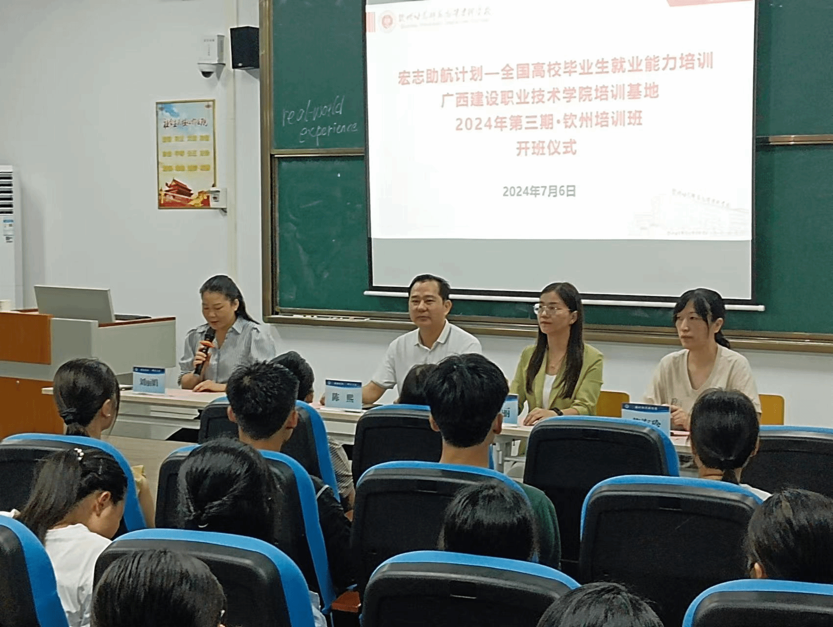 廣西建院7月8日訊(招生就業(yè)處 練翠瀅)7月6日,教育部“宏志助航計劃”全國高校畢業(yè)生就業(yè)能力培訓廣西建設職業(yè)技術(shù)學院基地2024年第三期培訓班開班儀式在欽州幼兒師范高等專科學校人文與管理學院14-301教室順利舉行。欽州幼兒師范高等專科學校副校長陳熙、招生就業(yè)處處長劉麗娟、招生就業(yè)處副處長黃海玲,廣西英華國際職業(yè)學院教師李雪霏,我校基地課程負責人林秀麗老師及來自欽州幼兒師范高等專科學校和廣西英華國際職業(yè)學院的72名培訓學員參加了開班儀式。...