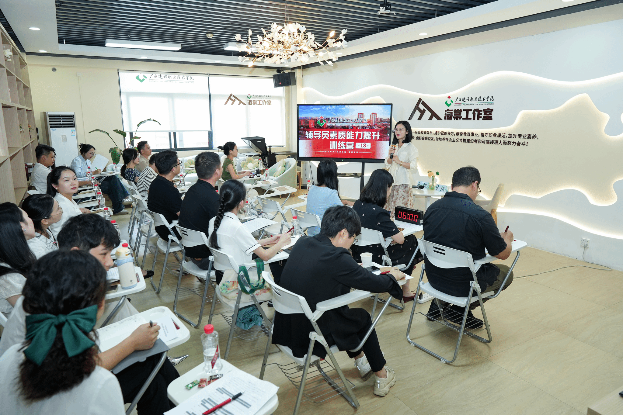 廣西建院9月14日訊(管理工程學院 文/黃欣欣 封炫妃 圖/宋景弘)9月13日下午,我校輔導員素質能力提升訓練營(以下簡稱“訓練營”)在海棠工作室舉辦,學校黨委學生工作部領導出席活動,來自7個二級學院的27位輔導員參訓。訓練營現場本期訓練營模擬輔導員素質能力大賽案例研討賽項,采用AB角形式,以“你提問,我回答”的方式,圍繞案例共同辨析原因、研討對策、總結規律,考察輔導員分析、研判和解決問題的能力。研討分“學員分組研討+...
