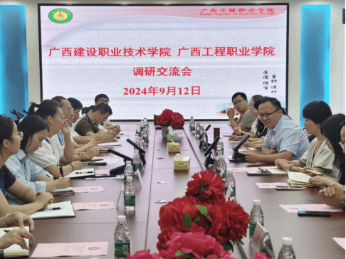 廣西建院9月13日訊(教務處 李瑩)為進一步推進與廣西工程職業學院結對幫扶工作,9月12日上午,我校教務處處長付春松率教務處一行12人赴廣西工程職業學院調研交流。廣西工程職業學院副校長黃德偉、教務處處長胡星萍及各二級學院相關負責人參加了座談會。座談會上,黃德偉副校長對我校付春松處長一行的到來表示熱烈的歡迎,詳細介紹了學校的辦學情況,并圍繞“雙高”建設、校企合作、產業學院、學徒制、課程思政、在線精品課程、虛擬仿真實訓室建設提出了7個“...