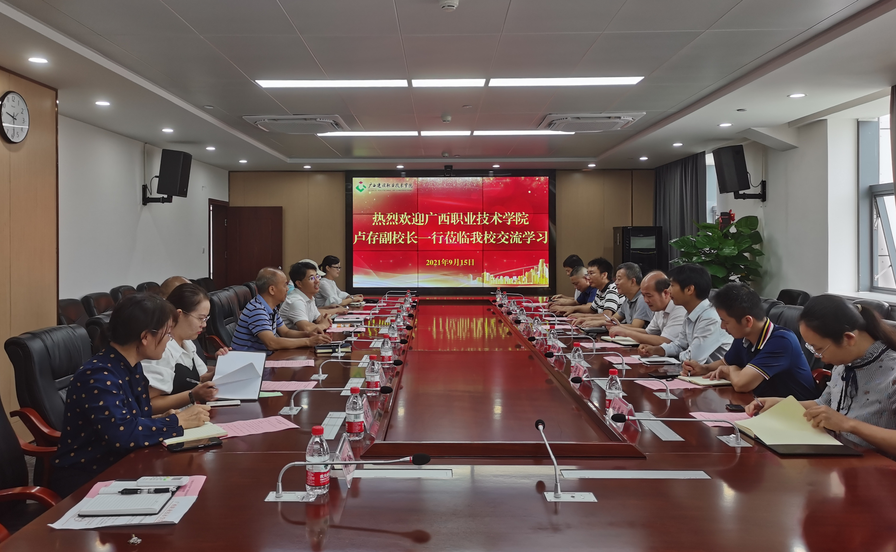 廣西建院9月19日訊(后勤管理處 陸青)9月15日上午,廣西職業技術學院盧存副校長一行8人到我校考察交流,雙方圍繞智慧食堂建設與管理、校園建設等工作進行了座談。學院副院長伍耿清出席座談會并主持會議,新校區建設...