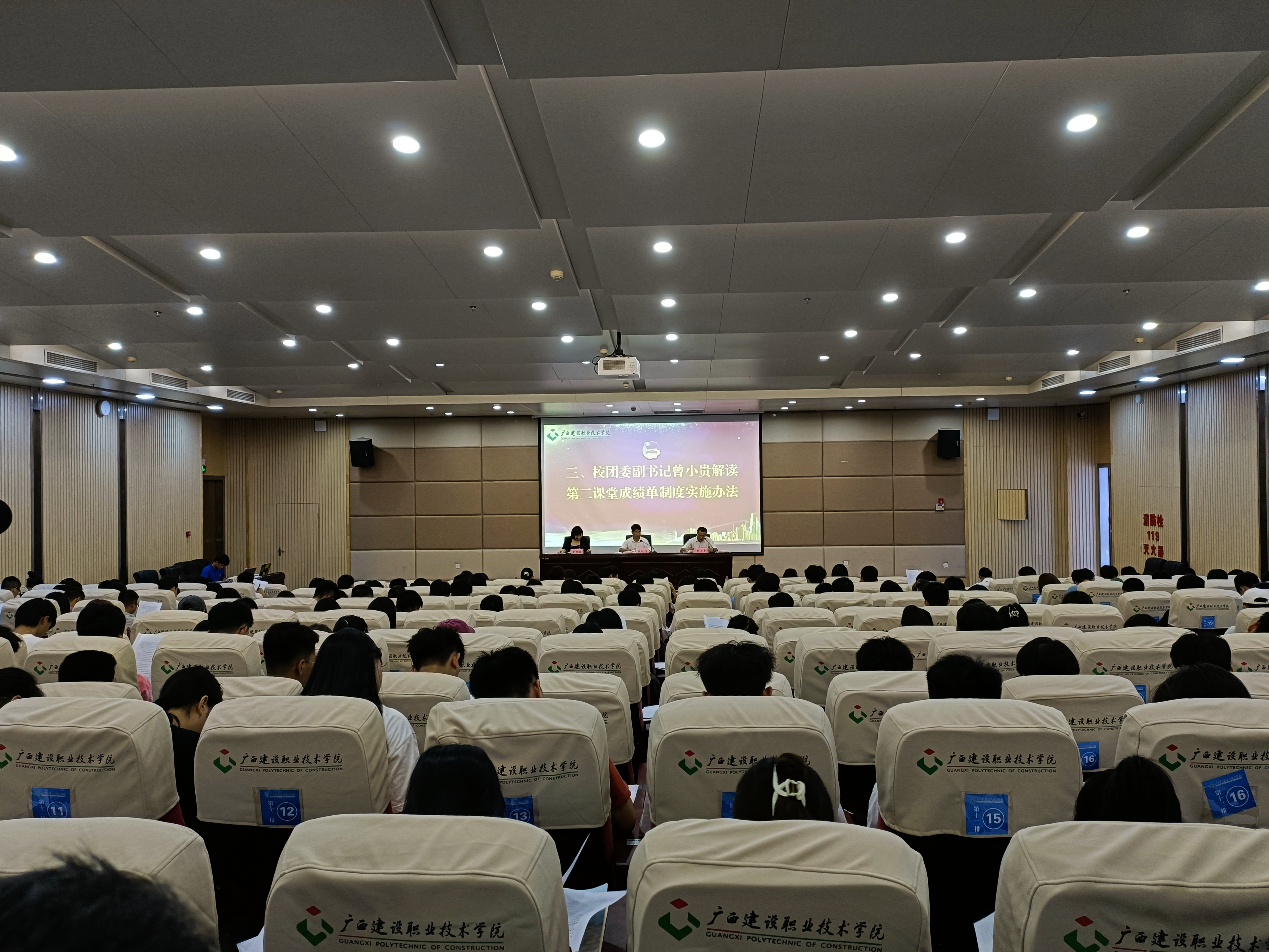廣西建院9月19日訊(團委 盧富遠 何柳芬)為加強學生創新精神和實踐能力的培養,引導學生廣泛參加種類豐富、形式多樣、育人效果良好的第二課堂教育活動,我校團委于9月17日在4號教學樓1樓報告廳舉辦“第二...