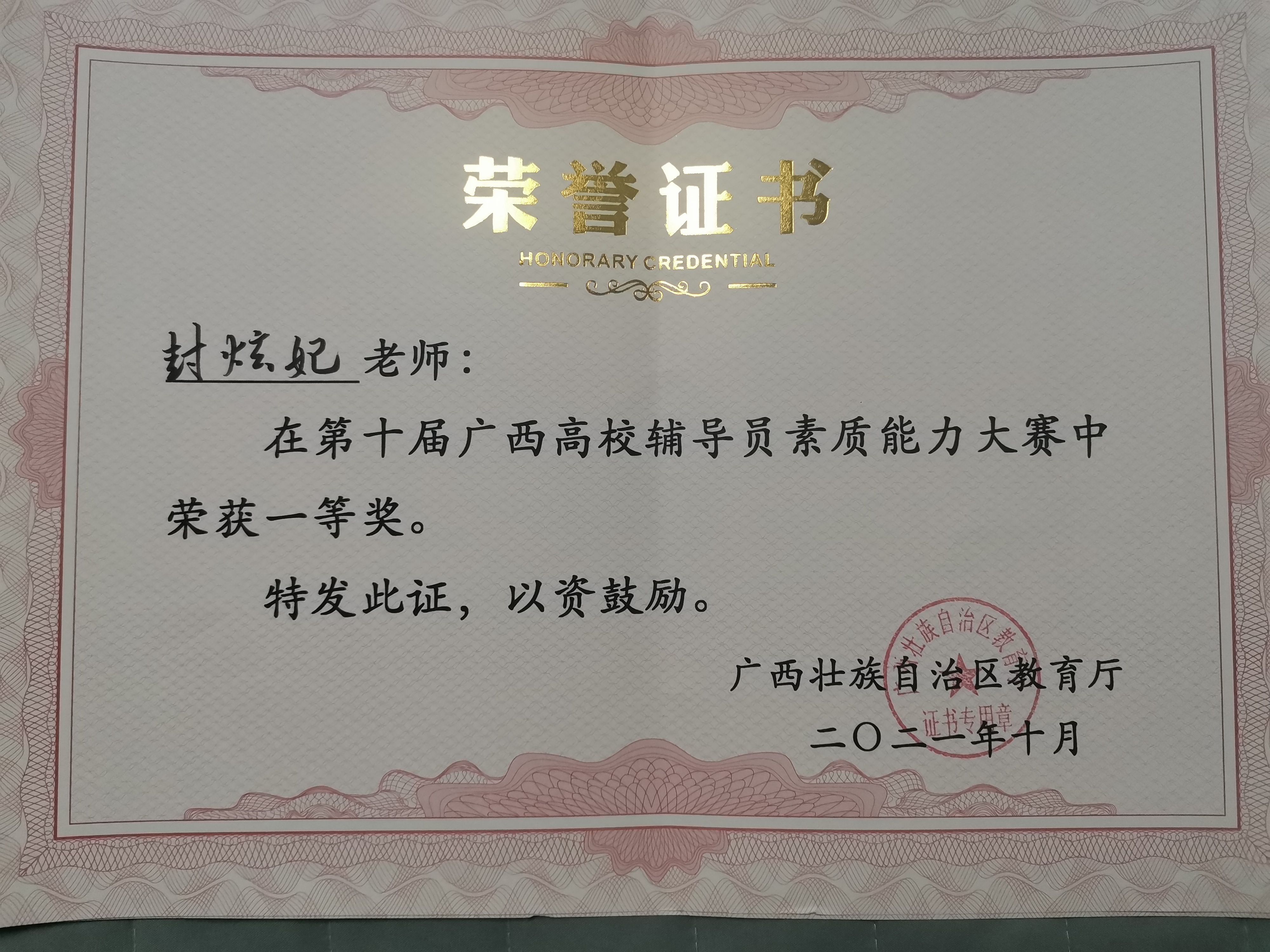 廣西建院10月24日訊(管理工程學(xué)院 郭海棠)10月20日至22日,第十屆廣西高校輔導(dǎo)員素質(zhì)能力大賽在廣西師范大學(xué)順利落下帷幕,我校管理工程學(xué)院輔導(dǎo)員封炫妃、建筑與規(guī)劃學(xué)院輔導(dǎo)員馮光帆雙雙榮獲大賽一等獎,其中封炫...
