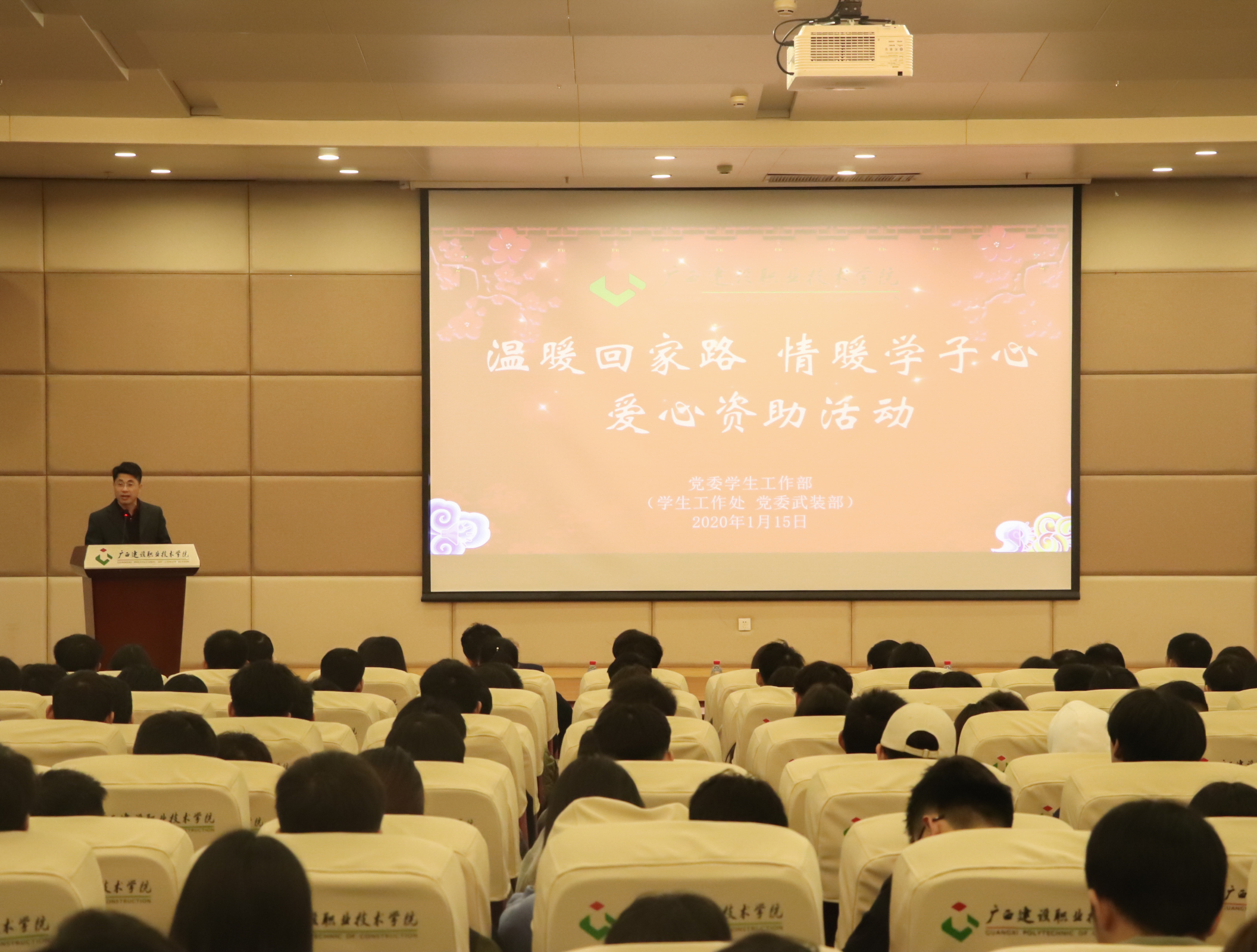 廣西建院1月16日訊(黨委學生工作部 陳悅悅)為進一步落實學校對家庭經濟困難學生的關愛,讓貧困學子感受到大家庭的溫暖,2020年1月15日,我校黨委學生工作部(學生工作處、黨委武裝部)在四號教學樓一樓報告廳舉行了...