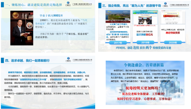 廣西建院10月20日訊(黨委學生工作部 馬凱)為發揮優秀校友的榜樣引領作用,引導學生傳承和弘揚“敢為人先、追求卓越”的建院精神,10月18日下午,我校在4教一樓學術報告廳舉行“弘揚建院精神 獻禮黨的二十大”主題講...