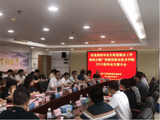 廣西建院6月9日訊(招生就業處?蘭寶鸞)為貫徹黨中央、國務院和自治區、南寧市有關“穩就業”“保就業”的決策部署,扎實推進駐邕高校畢業生留邕就業工作,南寧市住房城鄉建設局于2023年6月8日上午在南寧建設大廈召開駐邕高校畢業生留邕就業工作推進會暨廣西建設職業技術學院2023屆畢業生推介會。學校副校長柏挺帶隊參會,并與南寧市住建局、市人才辦領導,市住建局相關業務科室人員及市住建行業協會領導、企業代表座談交流。學校招生就業處以及七個二級學院相關領導一同參會。...