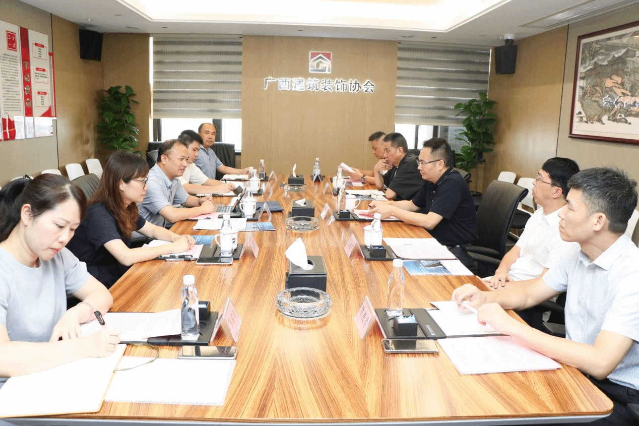 廣西建院9月1日訊(藝術設計學院易楚豪)8月31日,學校副校長梁偉、藝術設計學院副院長(主持工作)陳菲菲、就業干事易楚豪一行3人到廣西建筑裝飾協會秘書處開展交流座談。協會會長龐耀國、廣西建筑裝飾龍頭企業代表廣西華輝裝飾集團董事長楊景忠、廣西華藍裝飾董事長朱建宇、廣西新美格建設總經理李震海、廣西呈美裝飾副總經理陳良勇,以及協會相關工作人員出席本次會議。會議現場會上,梁偉副校長介紹了近年來學校發展的代表性成果和重點工作規劃。...