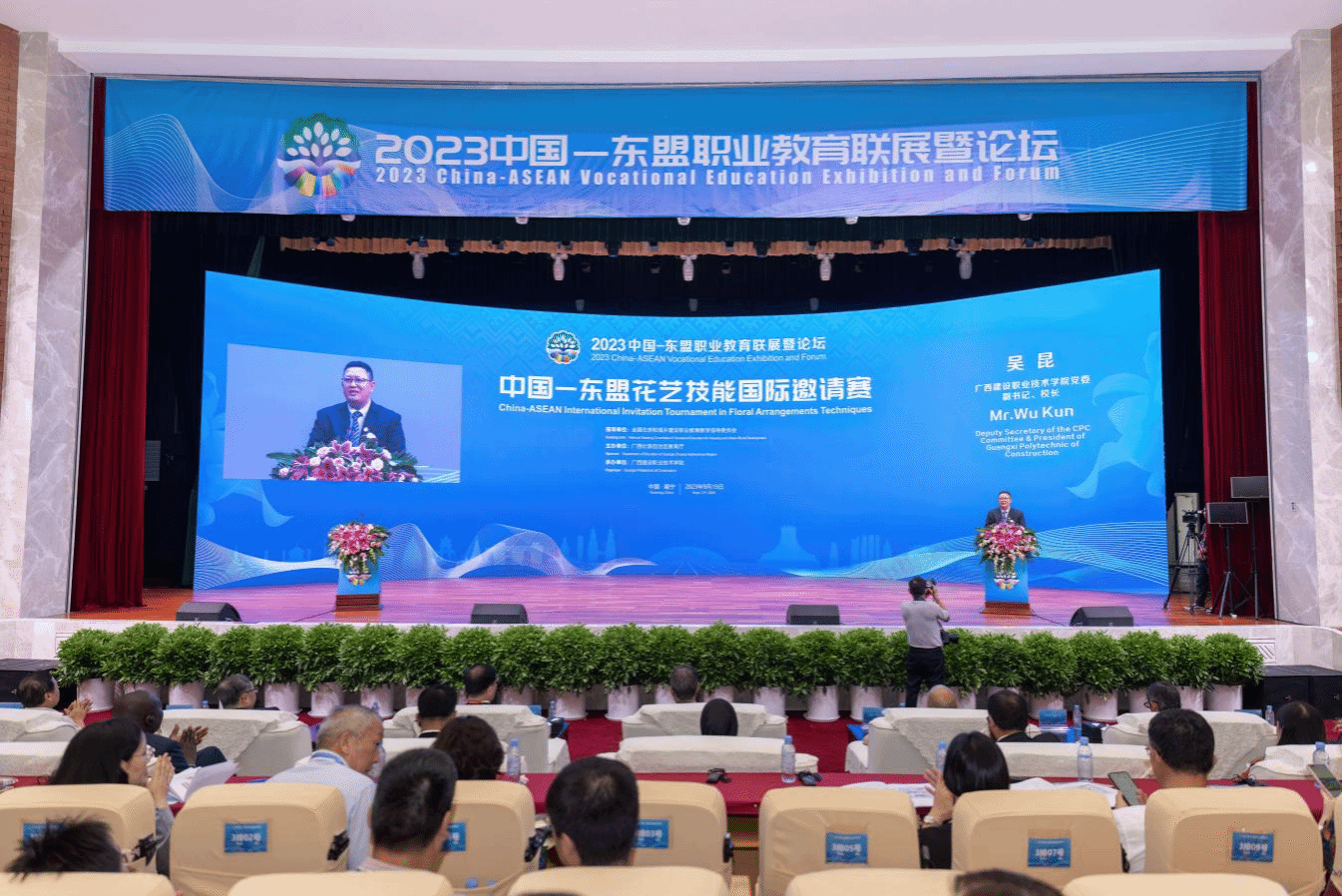 廣西建院9月16日訊(文/黨委宣傳部 韋植巍 圖/黨委宣傳部)9月15日,由全國住房和城鄉建設職業教育教學指導委員會指導,廣西壯族自治區教育廳主辦,廣西建設職業技術學院(以下簡稱“廣西建院”)承辦2023中國—東盟花藝技能國際邀請賽圓滿落下帷幕,頒獎儀式在廣西建院舉行。中國工程院院士、中國建筑股份有限公司首席專家肖緒文,住房和城鄉建設部人事司一級巡視員何志方,住房和城鄉建設部人力資源開發中心副主任、全國住房和城鄉建設職業教育教學指導委員會副主任委員兼秘書長程鴻,...
