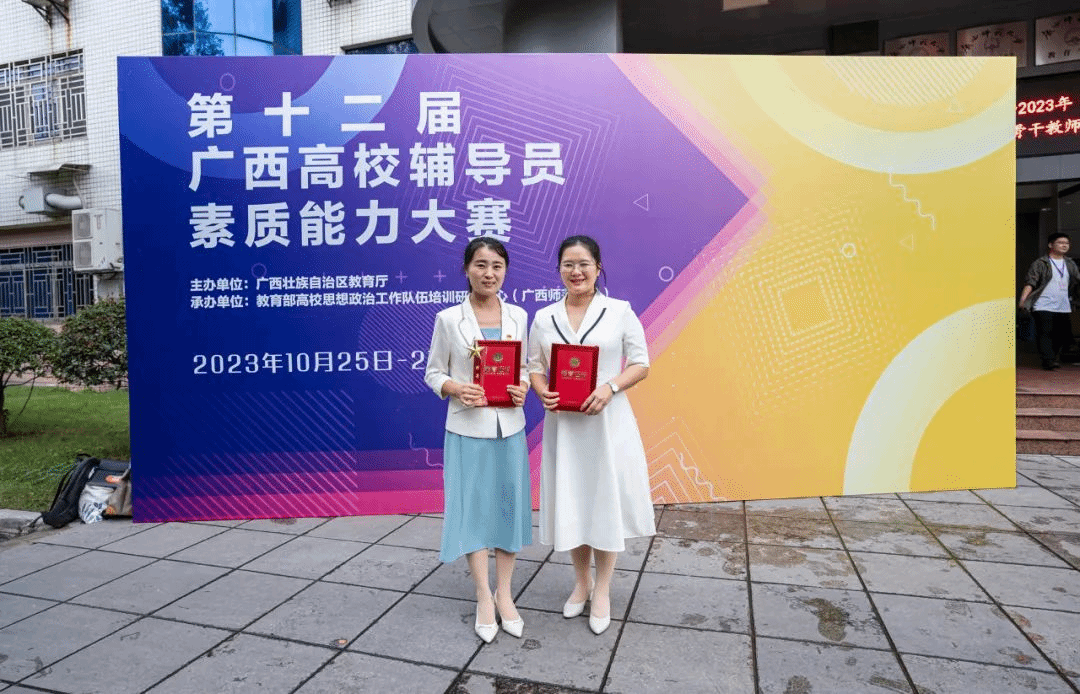 廣西建院10月31日訊(管理工程學院 宋景弘)10月25日至27日,由廣西壯族自治區教育廳主辦、教育部高校思想政治工作隊伍培訓研修中心(廣西師范大學)承辦的第十二屆廣西高校輔導員素質能力大賽在廣西桂林落下帷幕,共有來自全區70多所高校的90多名優秀輔導員參賽。經過激烈角逐,我校建筑與規劃學院劉云老師榮獲大賽特等獎,市政與交通學院李姿蓉老師榮獲大賽一等獎。劉云老師和李姿蓉老師合影參賽團隊此次大賽本、??七x手全過程同臺競技,...