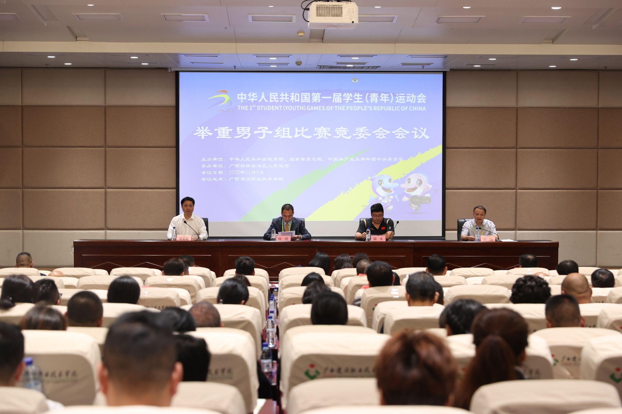廣西建院11月10日訊(文/黨委宣傳部 陳熙 圖/黨委宣傳部)11月9日上午,第一屆全國學生(青年)運動會(以下簡稱“學青會”)舉重男子組比賽競委會會議在我校四教一樓報告廳召開。體育總局舉重摔跤柔道運動管理中心舉重部部長、中國舉重協會秘書長何一群,廣西舉重運動發展中心黨支部書記、主任陸永,廣西建設職業技術學院黨委副書記曾繁雄,體育總局舉重摔跤柔道運動管理中心舉重部副部長李寧,第一屆全國學生(青年)運動會舉重項目技術代表王明玉出席會議。...
