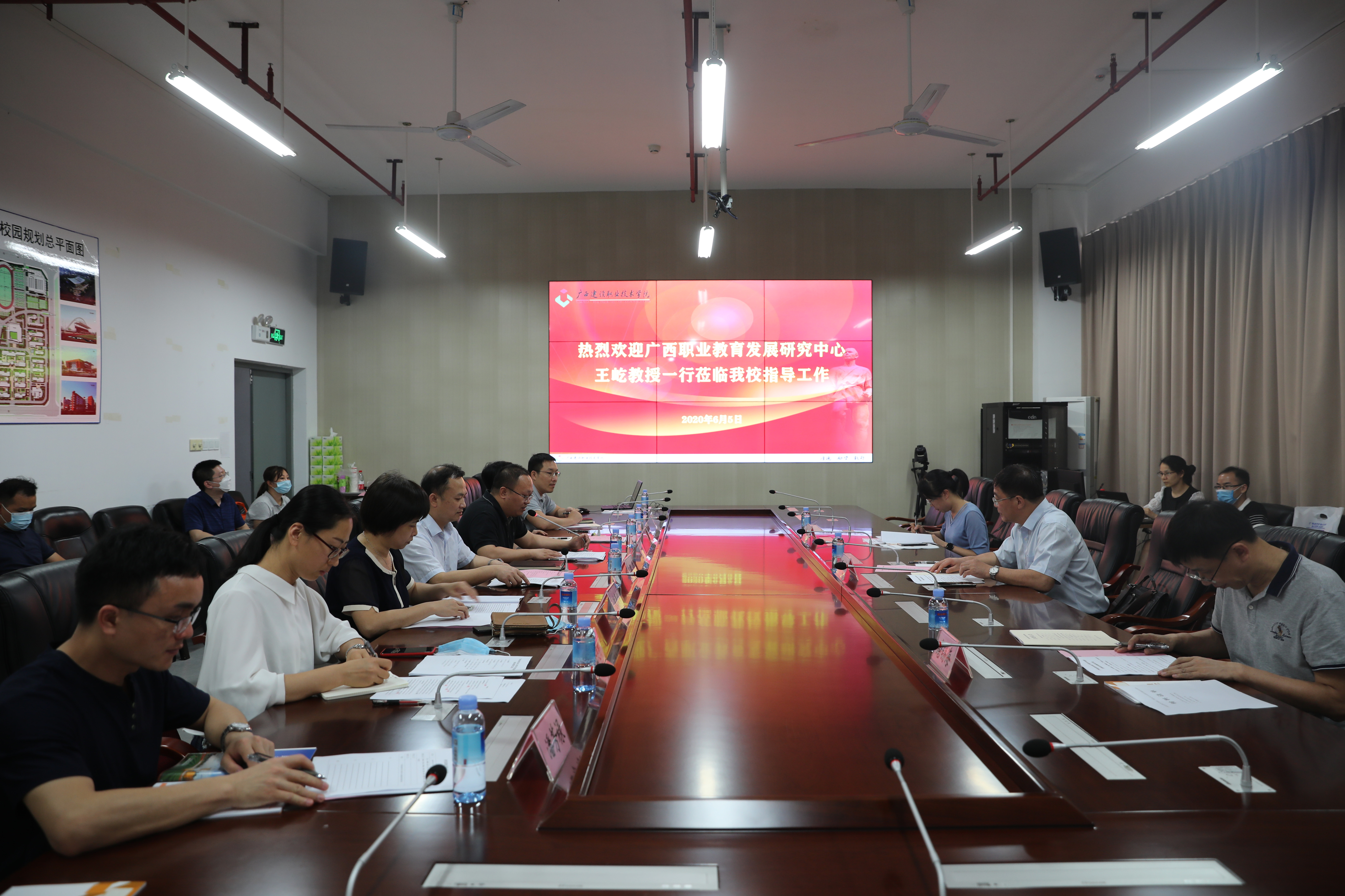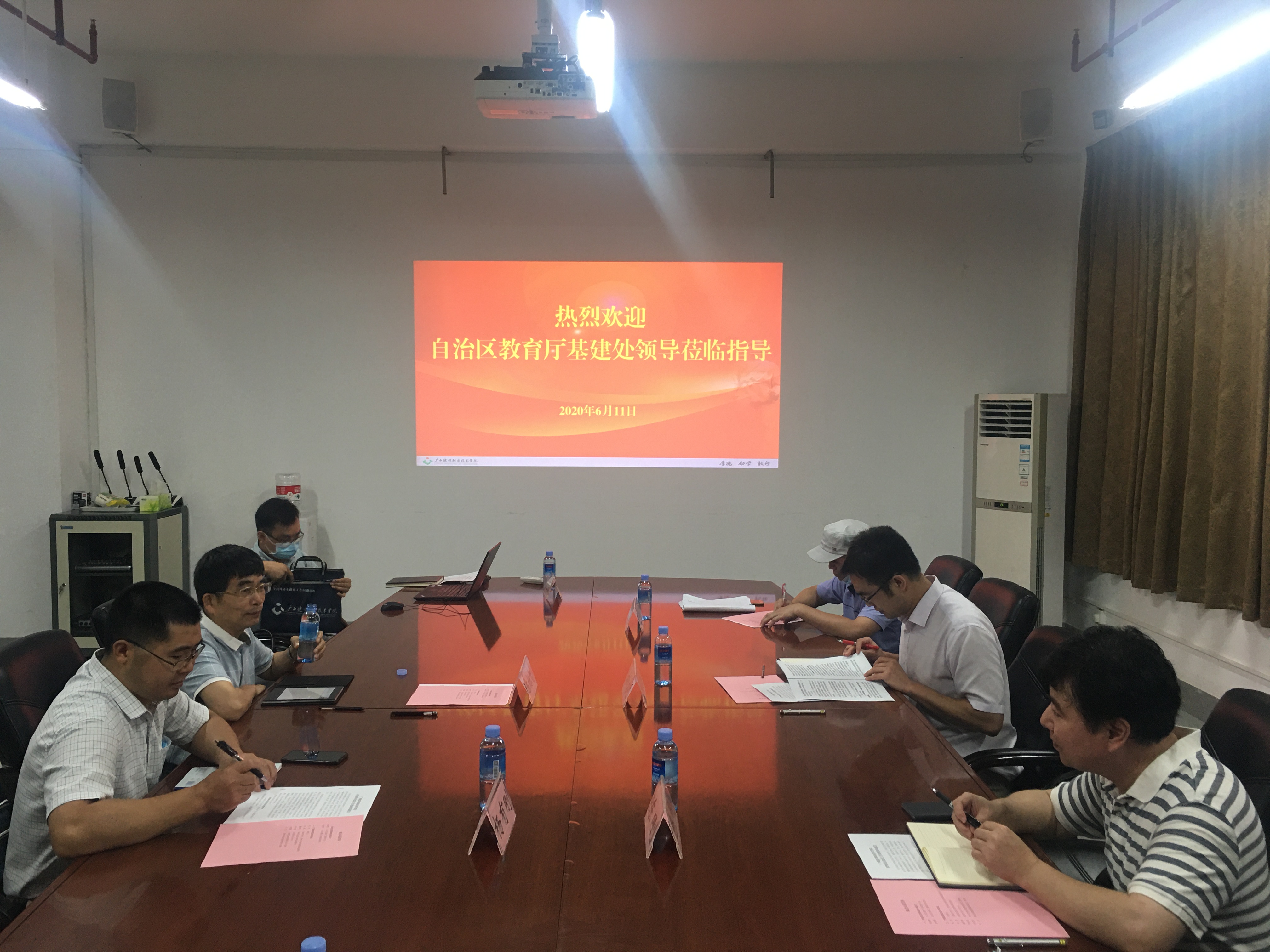 廣西建院6月12日訊(新校區建設指揮部 周宇翔)6月11日上午,自治區教育廳基建處陳標智處長、楊有剛副處長一行蒞臨我校座談,就武鳴新校區建設工作進展情況進行調研指導。學院柏挺副院長出席座談會,基建處、新校區建...