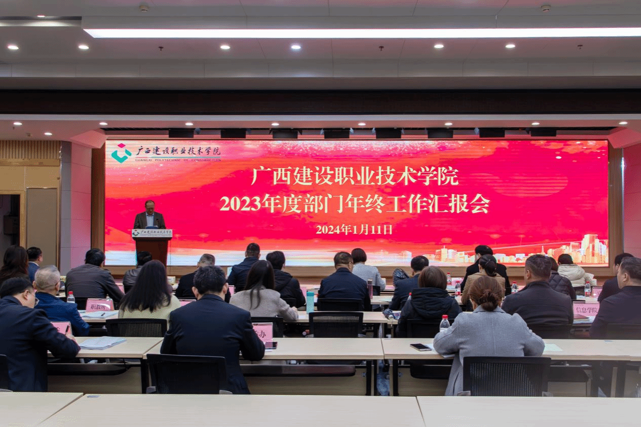 廣西建院1月13日訊(文/黨委宣傳部 韋植巍 圖/記者團 唐元庭)1月11日上午,我校在四教二樓報告廳召開2023年度部門年終工作匯報會。學校領導,各二級學院黨政主要負責人、各部門主要負責人參加會議。學校黨委辦公室主任王昭主持會議。會議現場會議現場會上,30個二級學院、部門的負責人依次對2023年度工作進行了匯報交流。各二級學院、部門主要圍繞年度工作目標任務完成情況、取得的進步和成績、存在的問題、解決對策及下一步工作計劃等展開匯報交流。...