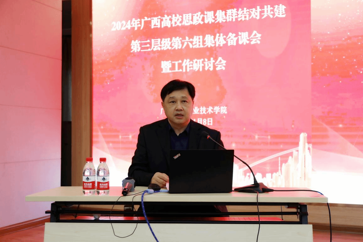 廣西建院1月9日訊(文/李琴 曹桃 圖/黨委宣傳部 韋植巍 記者團 李承紅)為充分發揮高校思政課立德樹人關鍵課程作用,凝聚共識,推動結對共建院校的思政課教學改革創新,1月8日,由我校主辦的廣西高校思想政治理論課集群結對共建第三層級第六組集體備課會暨工作研討會在四教二樓報告廳舉行。學校黨委副書記曾繁雄出席集體備課會并發表致辭。會議由我校馬克思主義學院黨總支書記、院長邱嵐主持。在集體備課會上,曾繁雄副書記對各兄弟院校馬克思主義學院負責人和教師代表的到來表示歡迎。...