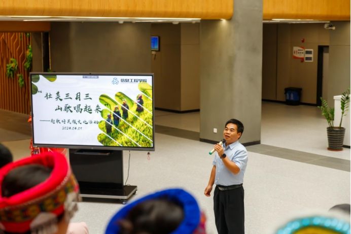 廣西建院4月9日訊(信息工程學院文/羅鳳媚 羅雪連圖/甘海龍)為弘揚民族傳統文化,展現民族文化魅力,4月9日下午,信息工程學院在學校圖書館大廳組織開展了“壯美三月三 山歌唱起來”趕歌圩民族文化活動。學校紀委書記唐東升,信息工程學院領導老師、國際留學生及學生代表參加了本次活動。唐東升書記在致辭中指出,“廣西三月三”不僅是傳統佳節,也是民族文化的重要載體,希望大家在享受文化盛宴的同時,積極傳承和弘揚我們的民族文化。...