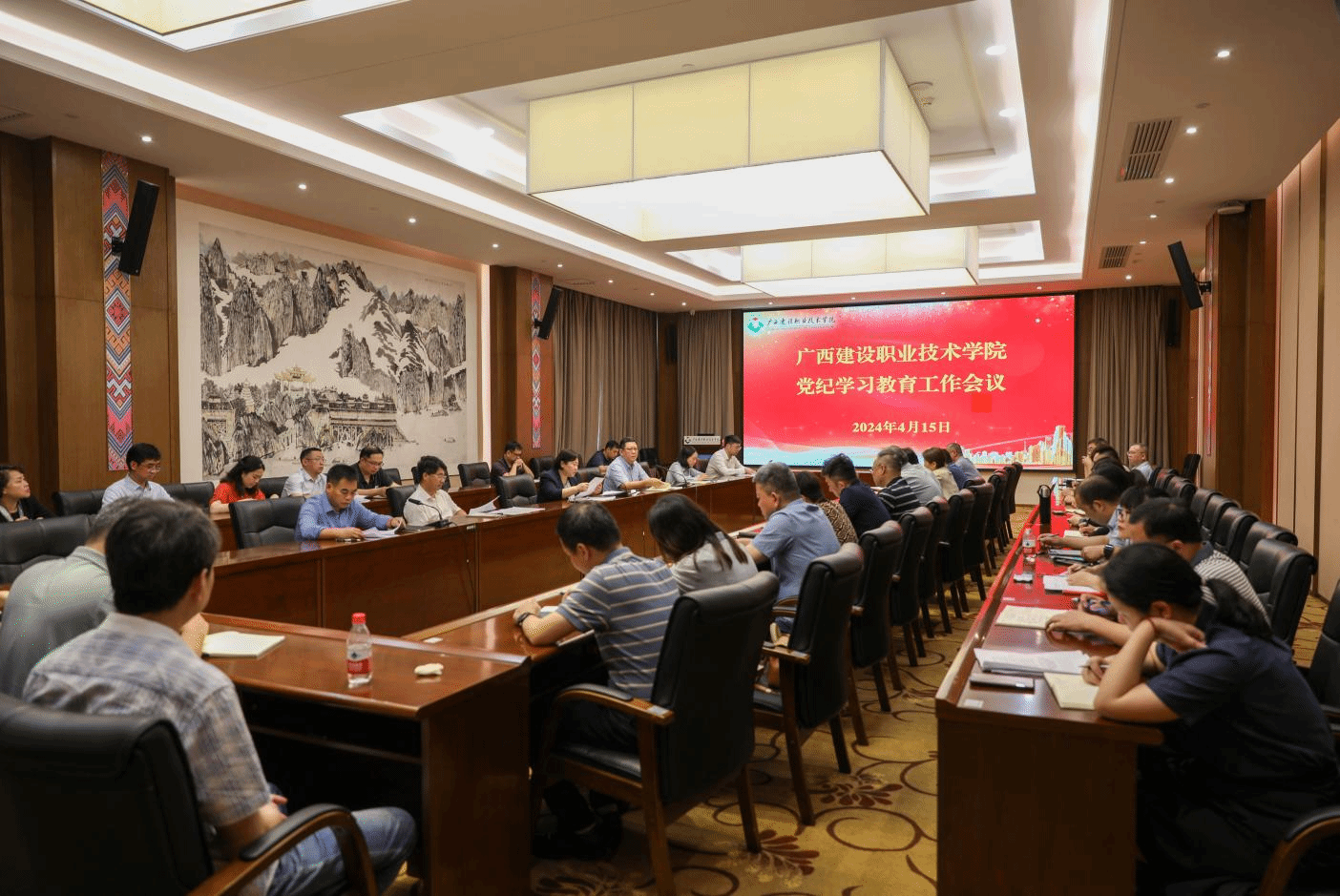 廣西建院4月16日訊(文/黨委宣傳部 何麗梅 圖/記者團 楊貴維)4月15日上午,學校黨紀學習教育工作會議在一教1樓會議室召開。會議深入學習貫徹習近平總書記關于黨紀學習教育的重要講話和重要指示精神,貫徹落實中央黨的建設工作領導小組會議、教育部黨組黨紀學習教育工作部署會和自治區黨委黨的建設工作領導小組會議精神,對全校開展黨紀學習教育進行研究部署。校黨委書記劉曉紅作動員部署講話。劉曉紅書記指出,在全黨開展黨紀學習教育,...