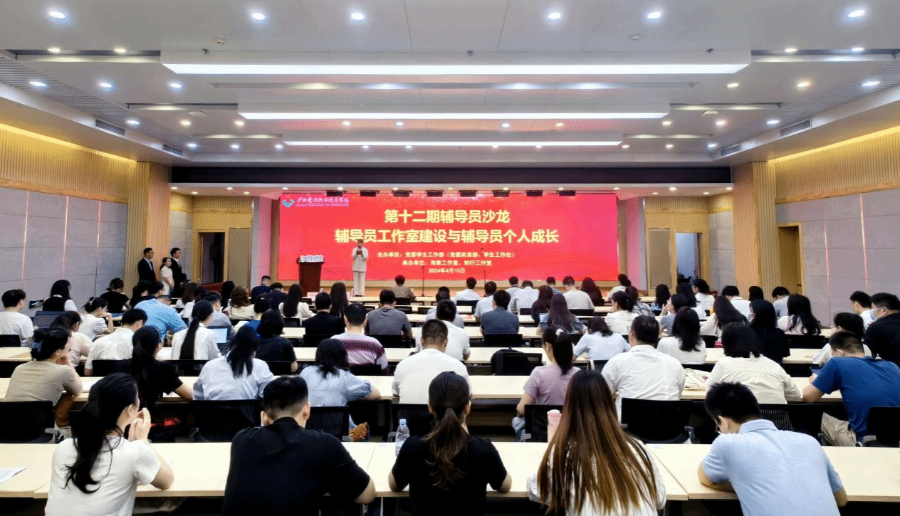 廣西建院4月17日訊(文/市政與交通學院 韋玲玲 圖/黨委學生工作部 馬凱)“我們擁有共同的名字,叫輔導員。我們在此發出莊嚴承諾——堅守育人初心,擎握使命榮光。”4月15日下午,我校四教二樓舉辦第十二期輔導員沙龍。活動在輔導員們《我們共同的名字——輔導員》的朗誦聲中拉開了序幕。學校副校長伍耿清,學工部、團委領導及各二級學院學管領導出席,全體輔導員、班主任代表參加活動。學校9個輔導員工作室成員代表依次上臺,圍繞“...