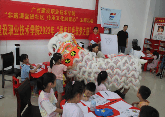 廣西建院7月15日訊(建筑與規(guī)劃學(xué)院 文/胡紅偉 李月梅 圖/田申 林麗琴)為弘揚(yáng)中華優(yōu)秀傳統(tǒng)文化,豐富社區(qū)青少年文化生活,7月13日—14日,廣西建設(shè)職業(yè)技術(shù)學(xué)院“青春龍獅”志愿服務(wù)團(tuán)與陸川縣圖書館合作開展為期兩天的“非遺課堂進(jìn)社區(qū) 傳統(tǒng)文化潤童心”主題活動,讓當(dāng)?shù)厍嗌倌暝诩议T口感受中華優(yōu)秀傳統(tǒng)文化的魅力。??觀看醒獅形象,繪畫醒獅風(fēng)采。7月13日上午,30余名小朋友在陸川縣圖書館參與活動。服務(wù)團(tuán)成員向現(xiàn)場的小朋友們講解龍獅文化,...
