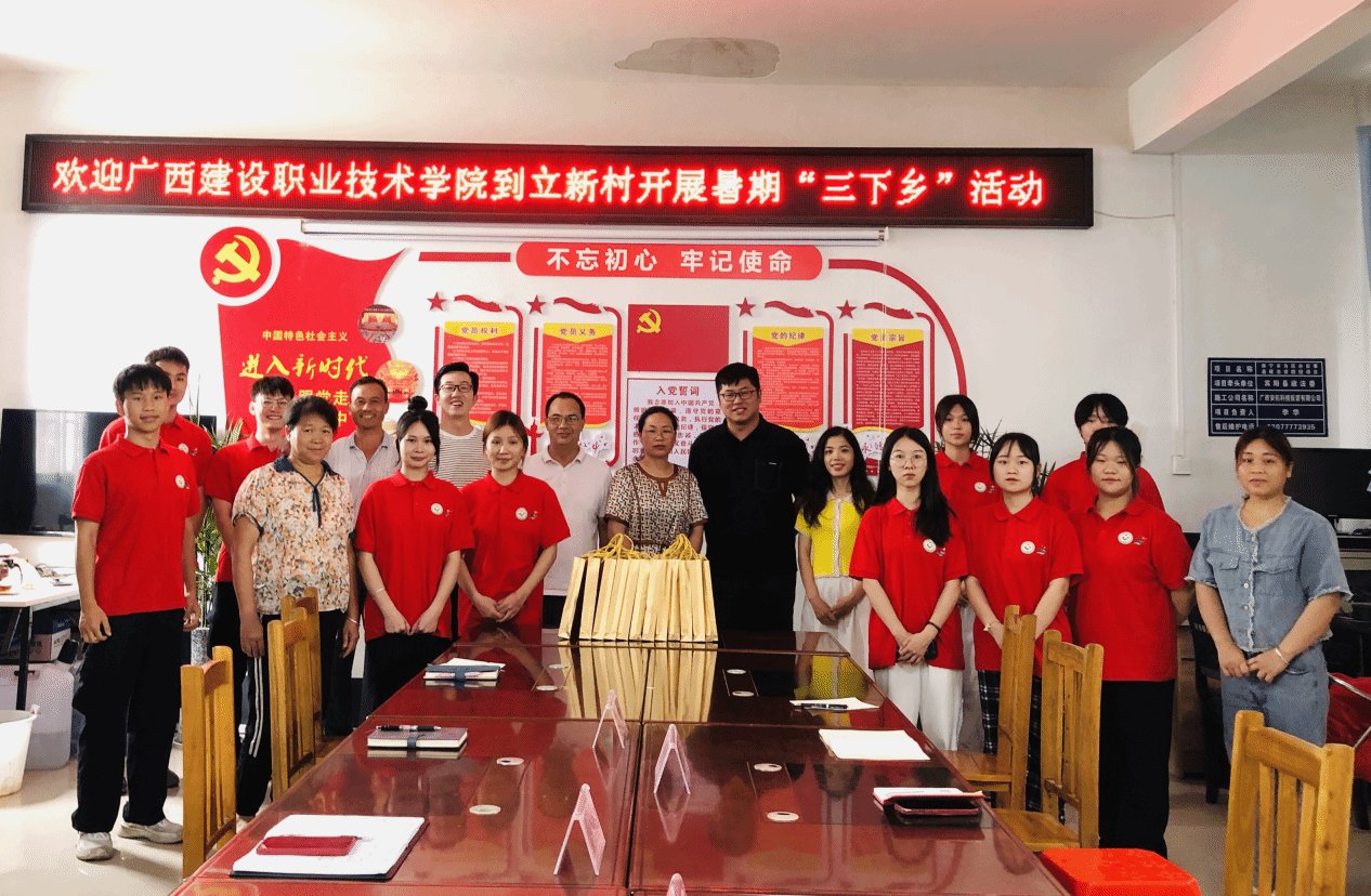 廣西建院7月15日訊(市政與交通學(xué)院 文/李姿蓉?圖/楊彩藝 何艷)為引導(dǎo)廣大青年學(xué)生發(fā)揮專業(yè)優(yōu)勢,深入鄉(xiāng)村基層開展社會實(shí)踐,近日,廣西建設(shè)職業(yè)技術(shù)學(xué)院“三下鄉(xiāng)”重點(diǎn)立項(xiàng)“檢測同行”團(tuán)隊(duì)一行12名同學(xué)在指導(dǎo)老師李姿蓉、林小雄、江鴻的帶領(lǐng)下,前往桂林陽朔縣金寶鄉(xiāng)開展為期5天的暑期“三下鄉(xiāng)”社會實(shí)踐活動,為建設(shè)美麗農(nóng)村、助力鄉(xiāng)村振興貢獻(xiàn)了積極力量。緊貼當(dāng)?shù)匦枨螅_展宣貫調(diào)研。“三下鄉(xiāng)”期間,團(tuán)隊(duì)與紅蓮村村委及駐村工作人員開展了“...