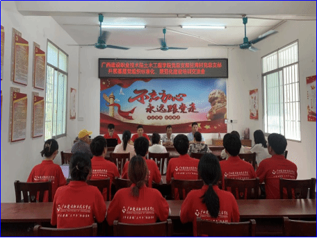廣西建院7月17日訊(土木工程學(xué)院 何梓溦)為進(jìn)一步夯實(shí)基層黨支部建設(shè),近日,廣西建設(shè)職業(yè)技術(shù)學(xué)院土木工程學(xué)院黨總支與都安縣甘灣村黨總支以“基層黨組織標(biāo)準(zhǔn)化、規(guī)范化建設(shè)”為主題開展培訓(xùn)交流會。?交流會現(xiàn)場本次會議由甘灣村駐村第一書記饒昌主持,都安縣甘灣村書記藍(lán)倫、土木工程學(xué)院學(xué)生第三黨支部書記洪美欽、土木工程學(xué)院學(xué)生第二黨支部書記梁祖鴻出席交流會并作交流發(fā)言。廣西建設(shè)職業(yè)技術(shù)學(xué)院“故居安筑”鄉(xiāng)村振興實(shí)踐隊(duì)全體師生參加會議。...