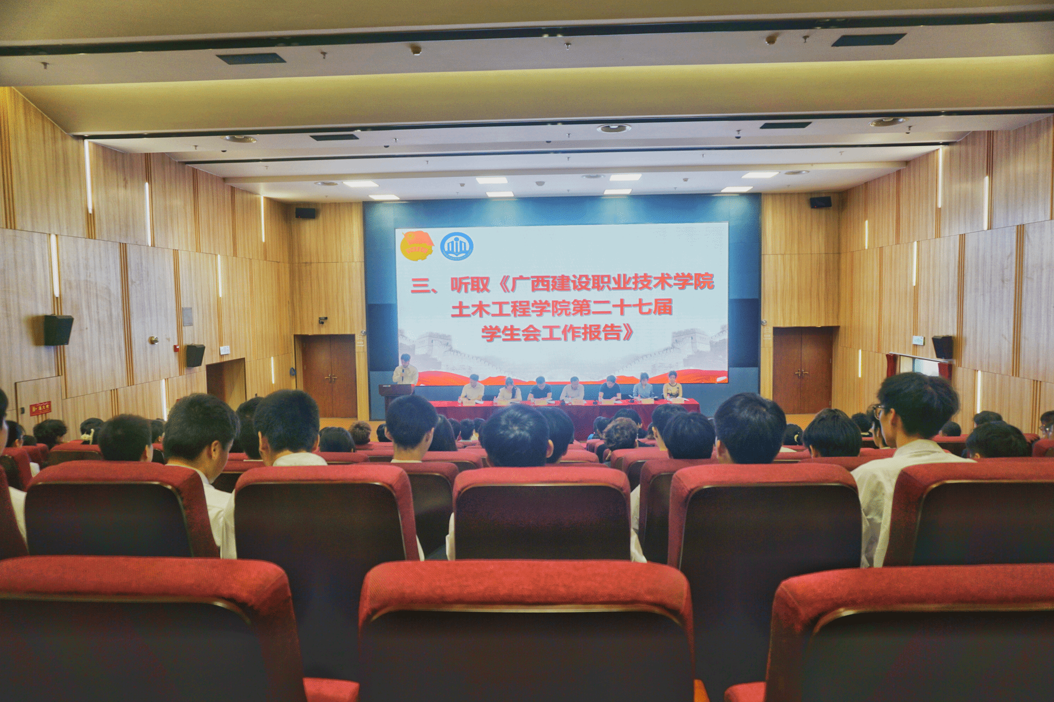 廣西建院11月9日訊(土木工程學院訊 文/馮光帆 圖/牟新儀 王海昕)近日,土木工程學院第二十八次學生代表大會在學校圖書館報告廳召開,校團委書記曾小貴,土木工程學院黨總支書記孔祥剛、團總支書記馮光帆,管理工程學院團總支負責人封炫妃出席大會。土木工程學院全體輔導員、學校各學生組織代表以及大會正式代表152人參加會議。預備會議上,土木工程學院第二十八次學生代表聽取并審議了大會籌備工作報告、代表資格審查報告、主席團候選名單以及正式會議議程。...
