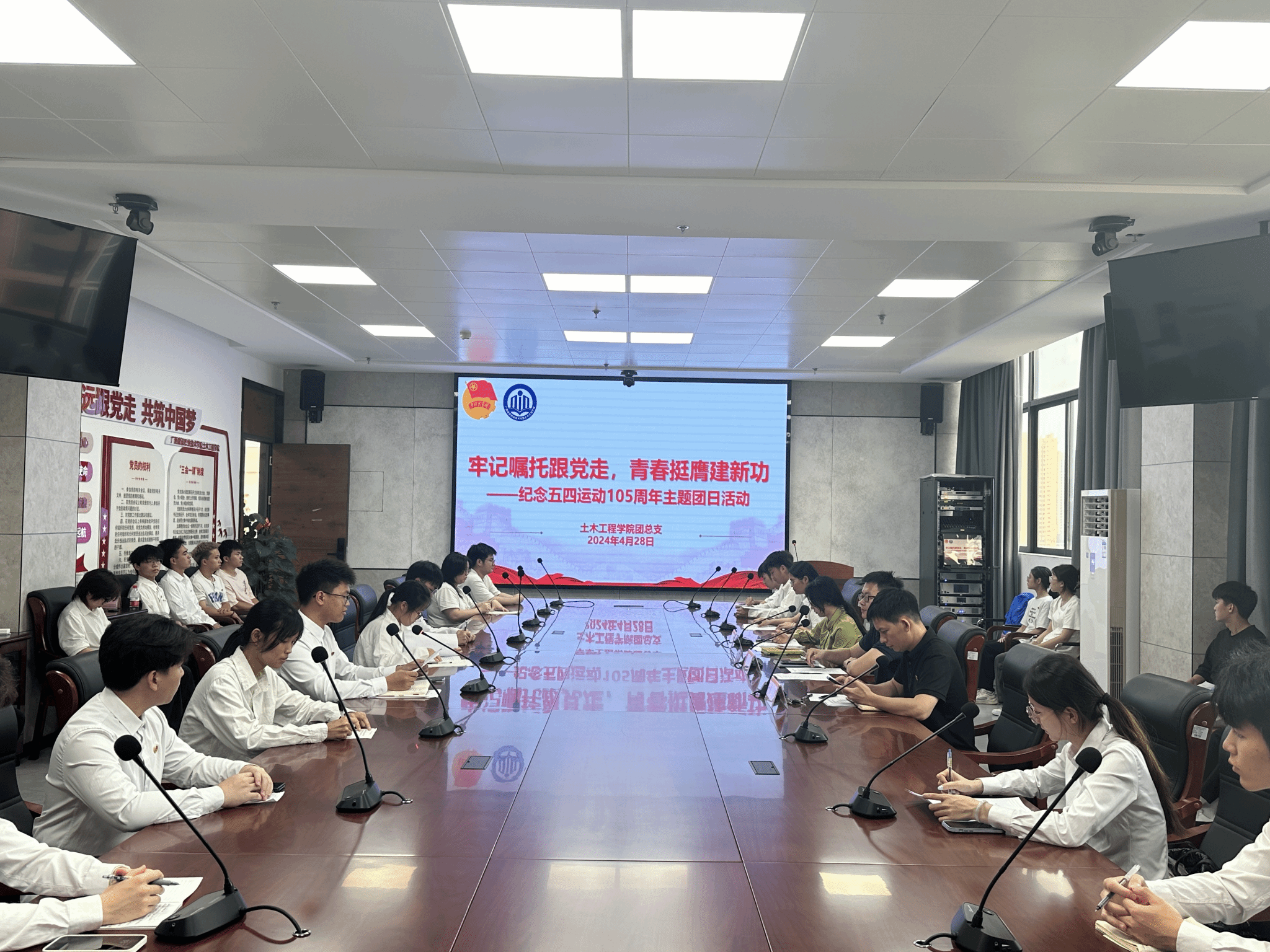 廣西建院4月30日訊(文/潘秀鎮 石明成 圖/孫藝菡)為弘揚五四精神,紀念五四運動105周年,土木工程學院于4月28日下午在5教10樓會議室開展了“牢記囑托跟黨走 青春挺膺建新功”——紀念五四運動105周年主題團日活動。土木工程學院團總支書記馮光帆,團總支副書記潘秀鎮、譚妍以及學生骨干代表、各班團員青年代表參加了本次主題團日活動。活動現場活動伊始,全體與會人員高唱《中國共產主義青年團團歌》。團總支副書記潘秀鎮帶領大家學習習近平總書記在紀念五四運動100周年大會上重要講話精神,...