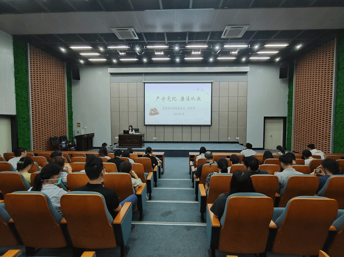 廣西建院6月17日訊(藝術設計學院 陳昕)為深入開展黨紀學習教育,引導黨員們擔當作為,切實將學習成果轉化為推動學院高質量發展的強大動力,近日,藝術設計學院黨總支書記陳菲菲以《嚴守黨紀 廉潔從教》為題,在6號教學樓3樓報告廳為藝術設計學院全體教師黨員講授專題黨課。陳菲菲書記對《中國共產黨紀律處分條例》(以下簡稱《條例》)進行了解讀,告誡全體黨員要學紀、知紀、明紀、守紀,強調教師黨員要結合工作實際,嚴守政治紀律、...