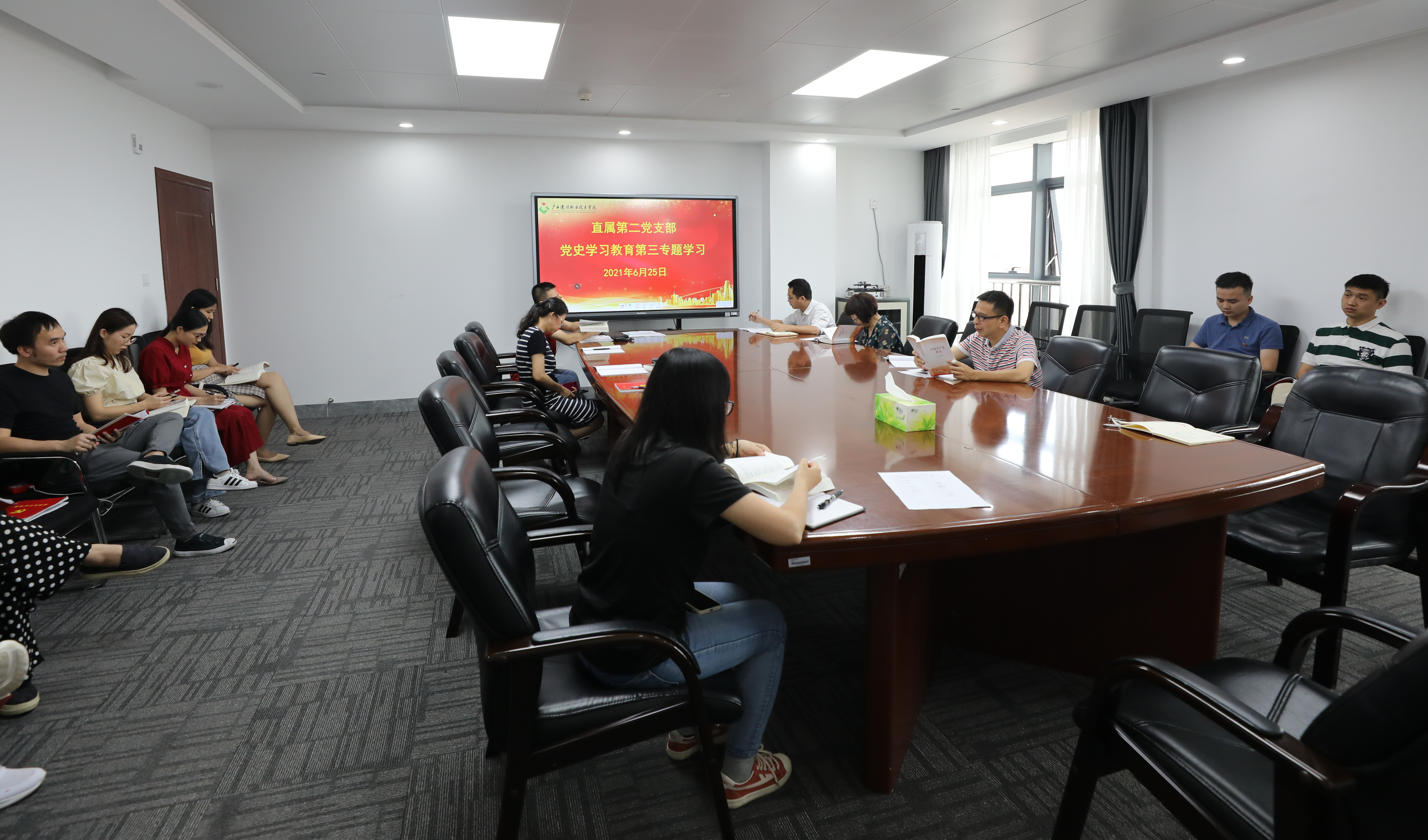 廣西建院6月25日訊(黨委宣傳部 陳熙)6月25日,直屬第二黨支部在行政樓1012會議室開展了黨史學習教育第三專題學習,支部書記龐松鶴主持學習會,支部全體黨員參加學習。本次學習的主題是中國共產黨社會主義革命和建設...
