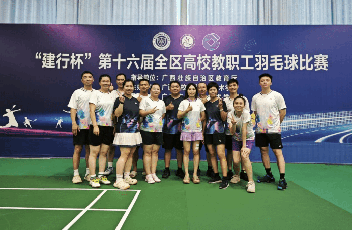 6月5日至8日,由自治區教育廳指導、廣西學校體育衛生藝術學會主辦、廣西交通職業技術學院承辦的“建行杯”第十六屆全區高校教職工羽毛球比賽在廣西交通職業技術學院昆侖校區舉行,來自全區53所高校658名教職工運動員參與角逐。本次賽事設置了教職工混合團體賽、校長組單打和雙打賽。我校教職工代表隊參加混合團體組比賽,并榮獲第五名。參賽人員合影比賽現場比賽現場在備賽階段,我校羽毛球隊面臨嚴峻挑戰——主力隊員中,有的賽前剛經歷重大手術,...