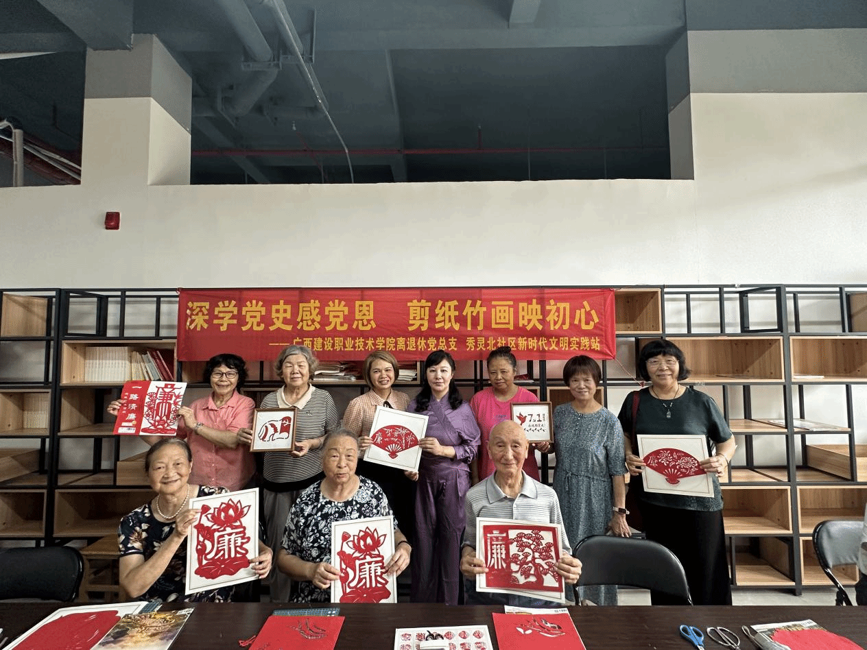 6月27日,我校離退休黨總支攜手秀靈北社區居委會,組織30余名退休黨員職工和居民,開展了一場別開生面的“深學黨史感黨恩·剪紙竹畫映初心”主題黨日活動。活動伊始,黨員們在社區書記陳秀蓉帶領下重溫入黨誓詞,表達忠誠信仰。現場為“光榮在黨50年”老黨員代表頒發了紀念章,傳遞組織關懷。廣西工業職業技術學院退休教師李燕帶領大家重溫了百年黨史紅色記憶。活動巧妙融合傳統文化與廉潔教育。工作人員介紹了竹編、剪紙非遺文化的歷史與價值。...