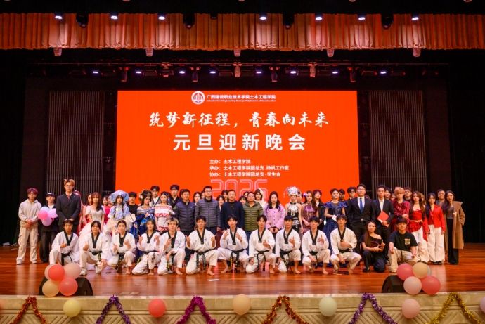 近日,由土木工程學院團總支、揚帆工作室聯合承辦的“奮進新征程 筑夢新時代”2026年元旦迎新晚會在學校禮堂舉行。校團委書記、黨委學生工作部副部長曾小貴,黨委學生工作部、土木工程學院領導老師及2025級新生共同觀看了晚會。晚會以“奮進新征程,筑夢新時代”為主題,精心策劃了15個形式多樣的節目,涵蓋現代舞、古典舞、流行音樂、朗誦、T臺秀、跆拳道等多種表演形式,由大學生藝術團、土木藝術團、大學生合唱團、音樂愛好者協會、...